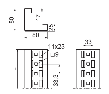 Elementy wsporcze instalacji szaf elektrycznych, regałów, stojaków, ram i konstrukcji wsporczych.