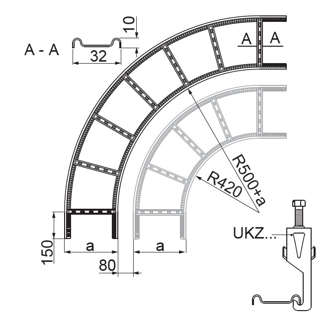 – szczeble przystosowane do montowania uchwytów kablowych UKZ/UKZO... i UKZP...
