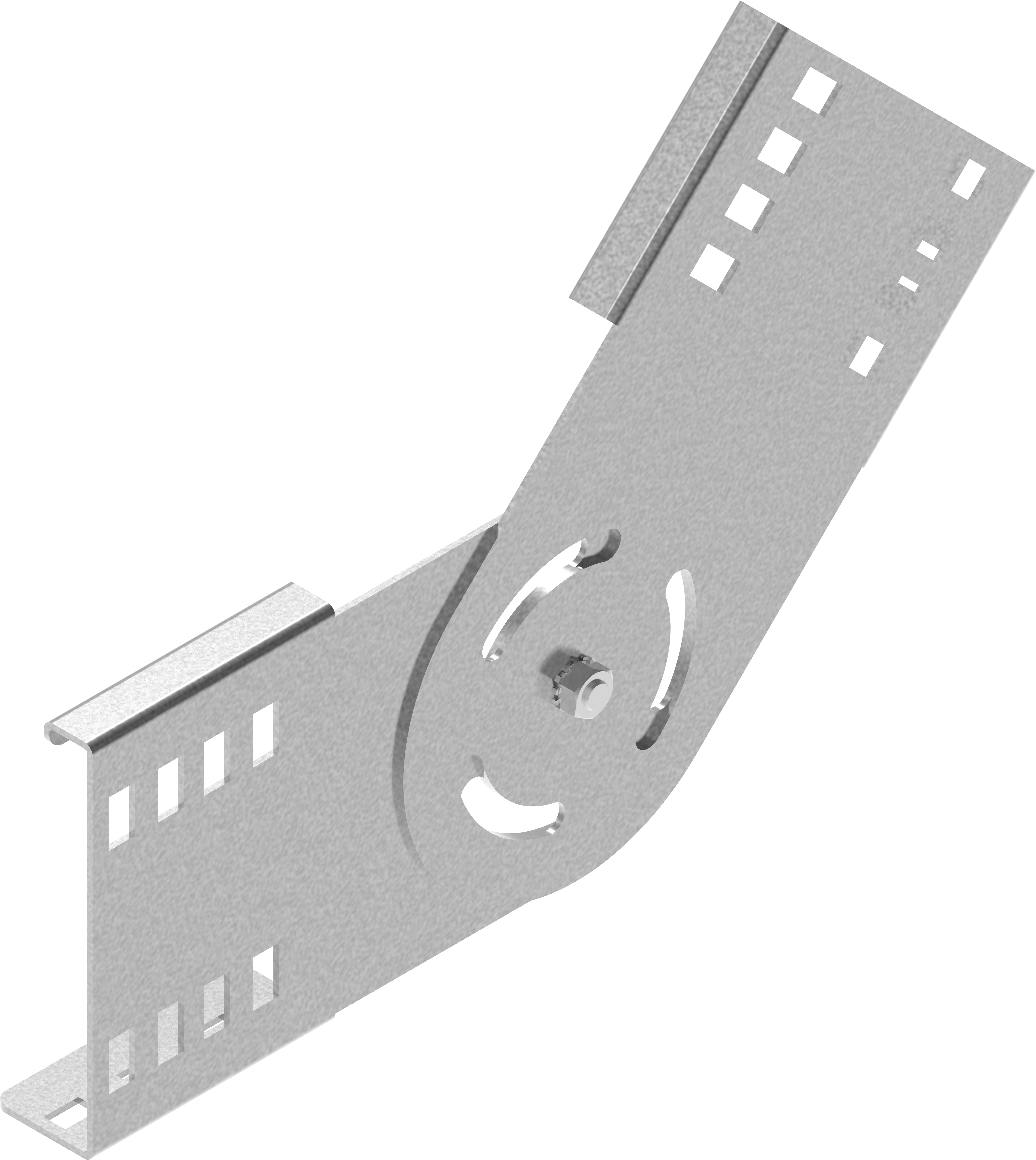 Łączenie drabin kablowych prowadzonych pod różnym kątem. Regulacja kąta w pełnym zakresie z blokadą.
