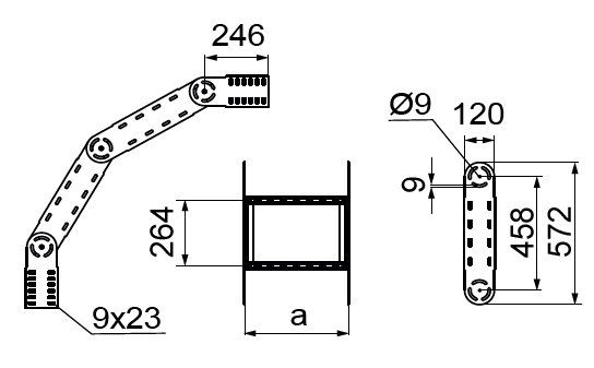 Zmiana kierunku prowadzenia trasy kablowej. Regulacja kąta w pełnym zakresie z blokadą.