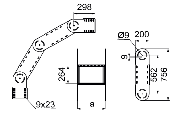 Zmiana kierunku prowadzenia trasy kablowej. Regulacja kąta w pełnym zakresie z blokadą.