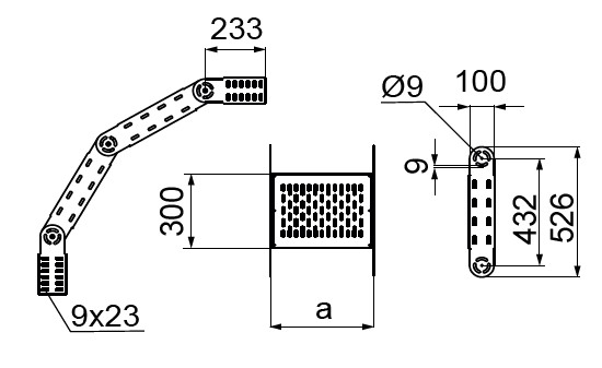 Zmiana kierunku prowadzenia trasy kablowej. Regulacja kąta w pełnym zakresie z blokadą.