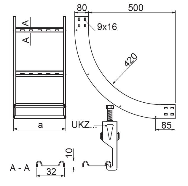 – szczeble przystosowane do montowania uchwytów kablowych UKZ/UKZO... i UKZP...