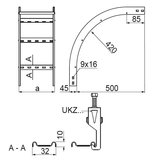 – szczeble przystosowane do montowania uchwytów kablowych UKZ/UKZO... i UKZP...