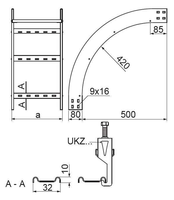 – szczeble przystosowane do montowania uchwytów kablowych UKZ/UKZO... i UKZP...
