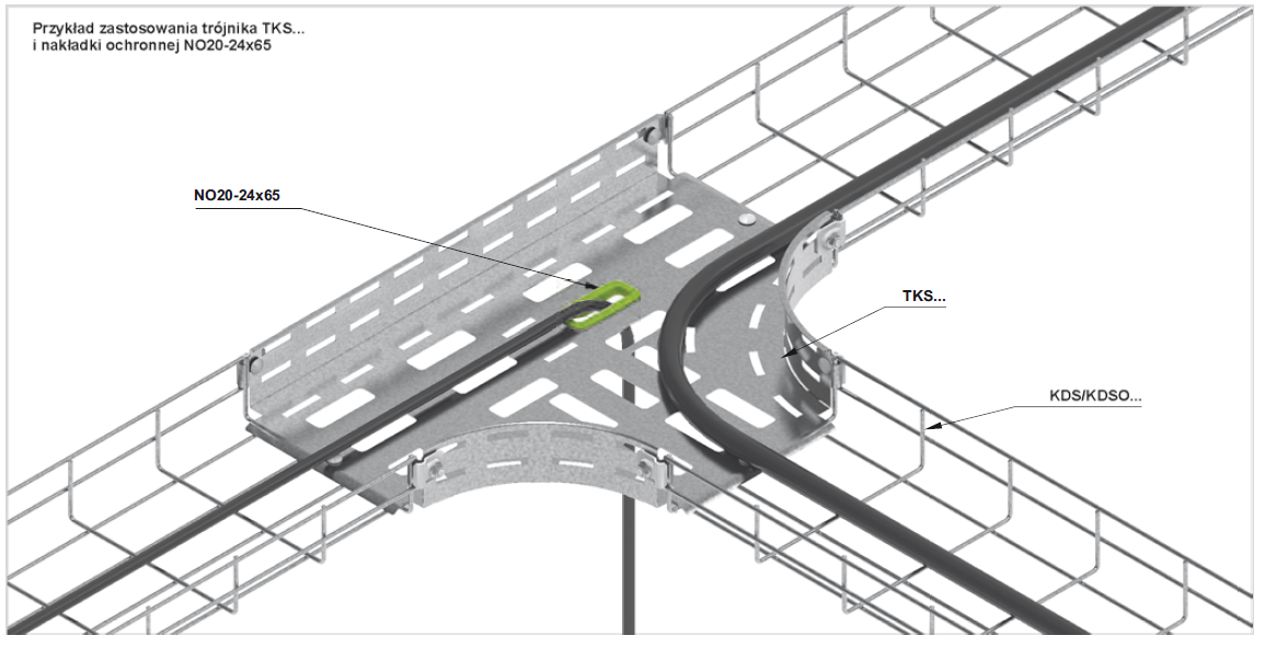 ПРИМЕНЕНИЕ Позволяет безопасно выводить провода из лотка МАТЕРИАЛ Полиэтилен. Стандарт - зеленый RAL 6029.Под заказ белый RAL 9010, серебряный RAL 9006. Примечание.Накладки применяются с лотками KAJ...