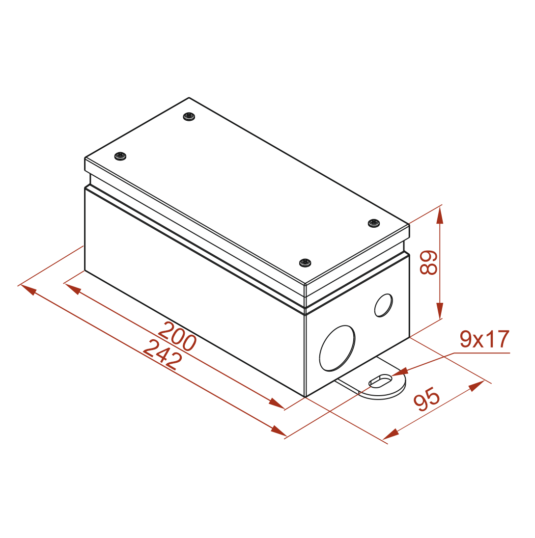 Śruby mocujące pokrywę – Torx TX20 z dodatkowym zabezpieczeniem zapobiegającym wypadaniu śrub z pokrywy po jej zdjęciu z puszki.